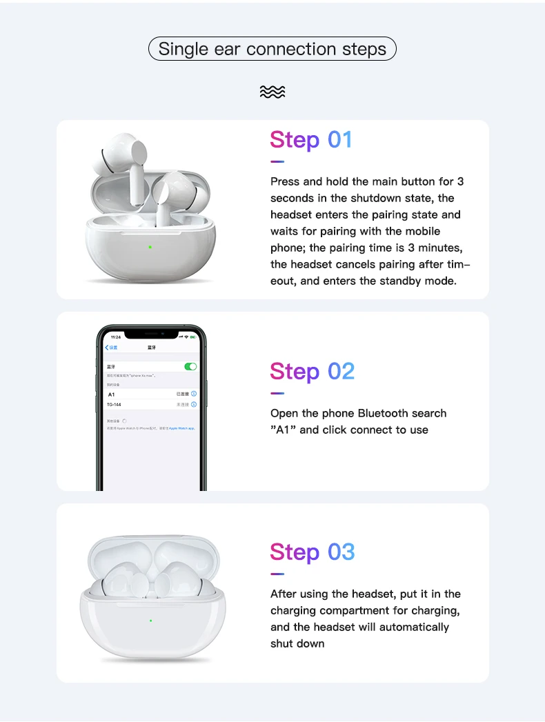 Product Description of A1 Mini Tws Headphone Touch Wireless Bluetooth 5.0 Earphone Earbuds Noise Cancelling Gaming Headset With Mic Charging Box