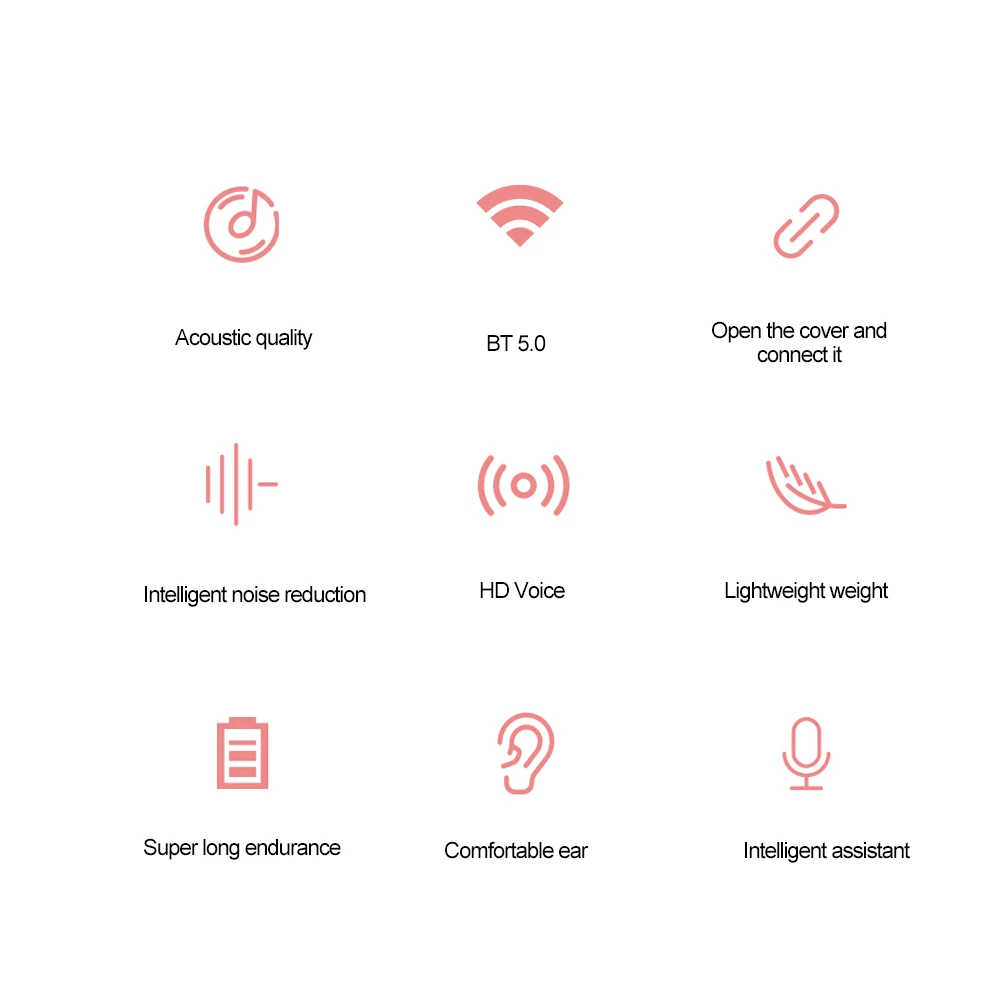 BT 5.0 technology brings high-speed data transfer speed, stable performance, and low power consumption. With TWS technology, you can use the headset solely or used them in pairs. Auto fast pairing between left and right earbuds once opening the charging case. Equipped with a charging box to charge the earbuds. Built-in Microphone delivers a clearer and more realistic sound. It will bring you a perfect user experience.