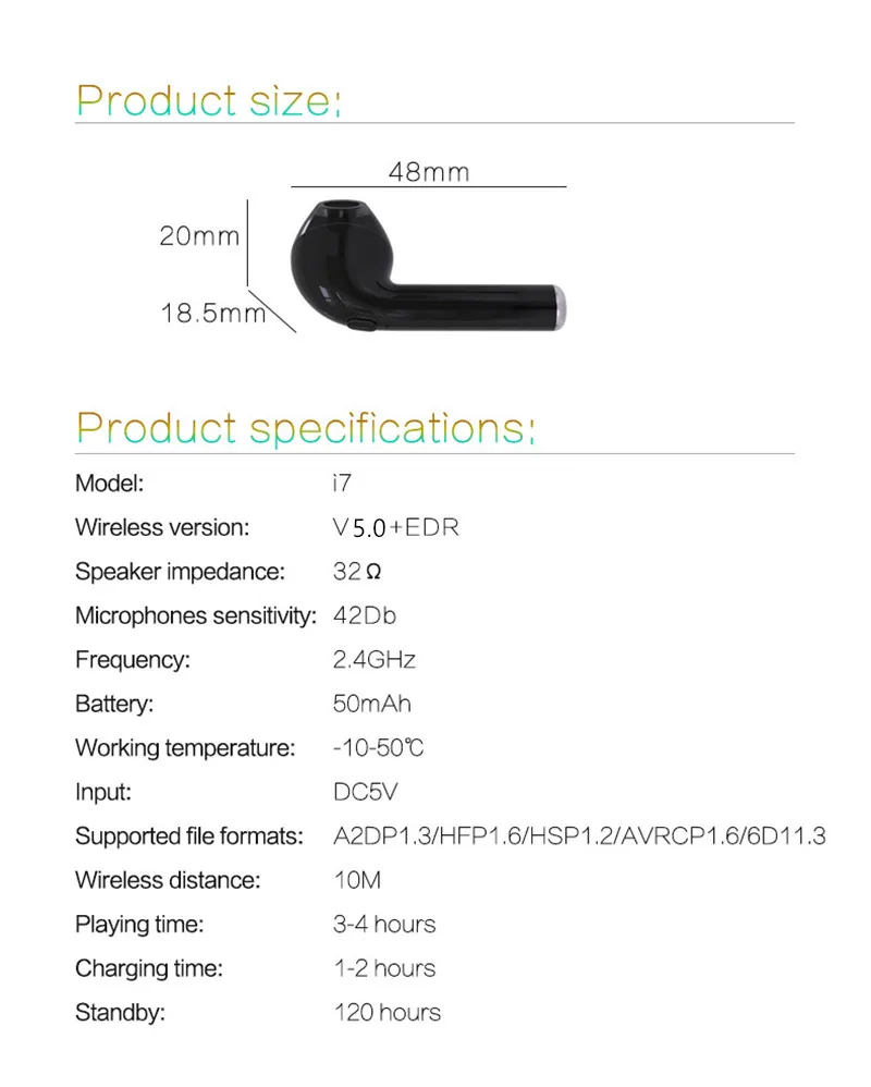 Product Description of UNITOP i7s TWS Wireless Earphones Bluetooth headphones sport Earbuds Headset With Mic Earpiece For Iphone Xiaomi Samsung Huawei
